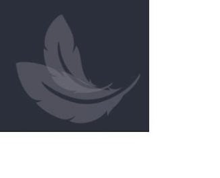 The mark consists of the stylized design of two overlapping translucent feathers. The mark appears on a shaded background which is not claimed as a feature of the mark.