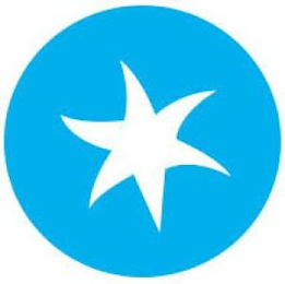 The mark consists of a stylized tomato formed by an irregular six-pointed star in white on a medium blue circle.