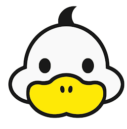 The mark consists of the head of a duck, having a black border, black feather extending from the top of the head, black eyes and nostrils, with filled in yellow bill and filled in white face.