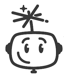 The mark consists of the outline of the neck and head of a robot character of human appearance, including eyes, eyebrows, ears, and a mouth; the head features a rounded rectangle with two parallel curved points conjoined to the shortest sides of the rectangle. Inside the rectangle, a curved line segment featured by the bottom left corner of the rectangle for the mouth; two smaller line segments curve away from each of the top corners of the rectangle for eyebrows; two oblong discs rest below the smaller line segments for the eyes, featuring a semi-circle portion presented within the negative space of the rectangle; two robot ears are connected to the sides of the head; a tilted line segment perpendicular to the top of the robot head features six line segments of varying lengths that resemble an asterisk. A four-pointed star is situated above the asterisk form.