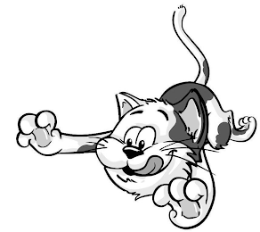 The mark consists of a stylized cat in a launching pose with shading on parts of the face, legs, and body, on its paws and ears, and on its tongue, sticking out of its mouth to its left.