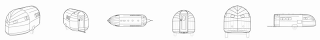 The mark consists of a three-dimensional configuration of a travel trailer in an elongated teardrop shape which narrows to a point in the back. The overall design is rounded from the front entry way then smoothly contours to an acute angle at the tail. A semi-spherical roof commences from the entry door at the front end and continues throughout the body and then gradually tapers top to bottom and side to side to a single point on the tail, creating a ridge line from the center roof to the point on the tail. The broken lines depicting wheels indicate placement of the mark on the goods and are not part of the mark.