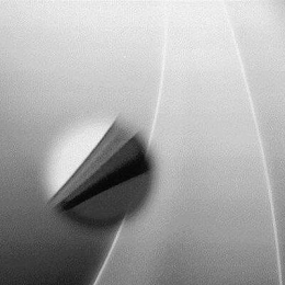 The mark consists of a sphere with a diffused perimeter having three curved strips extending across the sphere in a curved angle from upper right-hand portion to lower left-hand portion of the sphere, each strip narrowing in width as it extends toward lower left-hand portion of the sphere, the portion of sphere above the strips being white and the portion of sphere below the strips being black, the right side of sphere overlapping a portion of a curved swath defined by white lines and extending from above sphere to below sphere with width of the swath expanding from above to below the sphere.