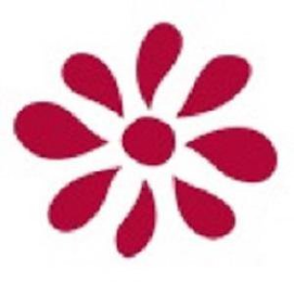 The mark consists of a red fanciful flower with eight stylized petals.