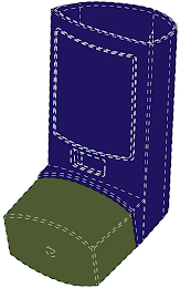 The mark consists of the color blue violet applied to the actuator of an inhaler, and the color green applied to the cap of an inhaler. The matter shown in broken lines is not part of the mark and serves only to show the position of the mark.