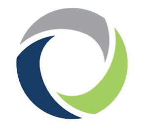 The mark consists of a circle formed by three shaded polygons, one being dark blue, one being grey, and one being light green.
