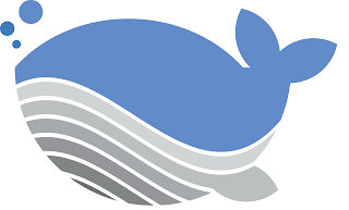 The mark consists of image of a whale, blowing 3, growing in size, blue bubbles, the top half of the whale is in a blue color, the bottom half of the whale consists of six grey bands separated by white spaces with the grey bands getting darker from top to bottom.