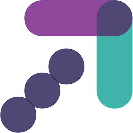 The mark consists of a stylized design of an arrow with the arrow shaft comprised of three purple circles and the arrow point comprised of two overlapping oblong shapes in the colors purple and green.