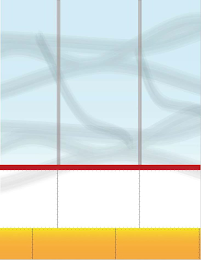 The mark consists of a stylized representation of a hockey board. The upper two thirds of the mark consists of a light blue rectangle. Below this is a red horizontal line, below the red line is a white rectangle, and below that is a gold stripe. Light gray vertical lines divide the light blue, white and gold rectangles into three parts. Curved gray lines appear in the background of the blue rectangle, and a curved gray line appears in part of the white rectangle. Small gray dots appear near the red horizontal lines and near the lines in the white and gold rectangles.