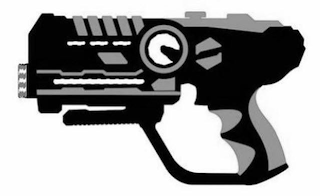 The mark consists of a light-contrast color and a mid-contrast color as they respectively appear on the handle, rip, rail, side, barrel, and top of individual guns sold in a set of four and a dark-contrast color as it appears in the body of each toy gun.