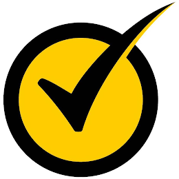 The mark consists of a black circle outlining a yellow circle with a black checkmark in the middle of the yellow circle, featuring a shadow effect in yellow. The white background is not part of the mark.
