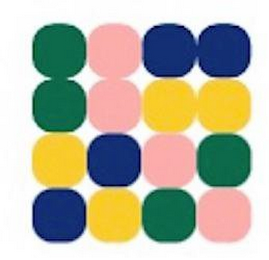 The mark consists of sixteen dots stacked in rows of four in the following color arrangement from left to right, top to bottom:green, pink, blue, blue; green, pink, yellow, yellow; yellow, blue, pink, green; and blue, yellow, green, pink.