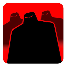 The mark consists of the head and upper body of three silhouetted figures with red eyes, where the figure in the middle is black and outlined in red and the figures on each side are dark red. All of the figures are on a red square with rounded corners.
