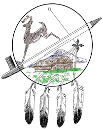 The insignia consists of a large circle with a traditional pipe that cuts through the circle, separating the top and bottom. Below the traditional pipe is an image of the Tribe's traditional summer home sitting on top of a green grass field with a mountain resting in the background, as one would find in El Nacimiento, Coahuila (México). The deer, which is an important animal in Kickapoo traditions, stands on top of the pipe. There are four eagle feathers connected to a four-sided cardinal direction, which signifies the four seasons. The cardinal direction has a line that connects to a small circle, which is the sun.