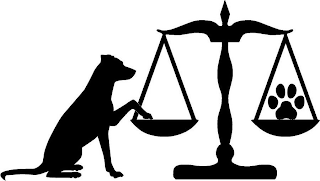 The mark consists of the scales of justice with a dog's paw print on the right scale and the side image of a dog placing a paw on the left scale.