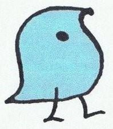 The mark consists of the stylized image of a side-profile of bird in the color blue outlined in black having a black eye and two black feet.