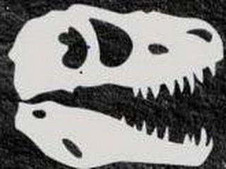 The mark consists of image of a fossilized carnivorous open-jawed dinosaur skull including teeth.