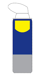The mark consists of a yellow shield in the top fourth of a cylindrical can, with the top two-thirds of the can having the background color blue. The bottom one third of the can is grey. The top of the can is outlined in black. The color white represents transparent areas and is not part of the mark. The dotted outline of part of the cylindrical can is intended to show the position of the mark and is not part of the mark.