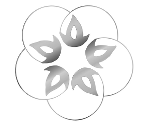 The mark consists of a mandala design featuring 5 round scalloped edges and a lotus flower within each.