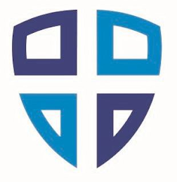The mark consists of the shape of a shield formed by four corner portions, the upper corner portions being more rectangular and the lower corner portions being more triangular such that the four corners together define a shield shape with a cross there between, the upper left and lower right portions being dark blue and the upper right and lower left portions being light blue. The color white shown in the mark is intended to represent transparent background area and is not claimed as a feature of the mark.