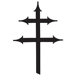 The mark consists of a cross having a vertical bar with an arrowhead on the top and an angled bottom end, crossed by two shorter horizontal bars each having an arrowhead on either end, the upper horizontal bar being shorter than the lower horizontal bar.