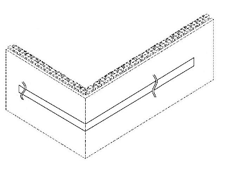 The mark consists of a generally rectangular strip located on an insulated concrete form corner as shown in broken lines to indicate placement.