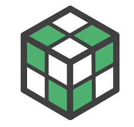 The mark consists of a three-dimensional cube outlined in the color black; each side of the cube containing 4 squares with alternating white and green squares with each square outlined in black.