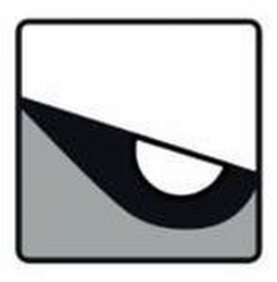 The mark consists of a square with rounded corners containing a partial eye under a slanted line.