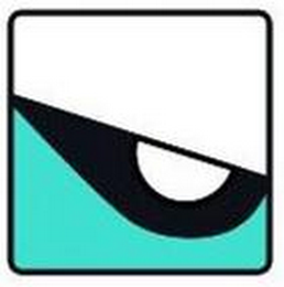 The mark consists of a black square with rounded corners and a white upper background and turquoise lower background, containing a black and white partial eye under a slanted black line.