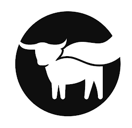 The mark consists of a solid circle with a steer in the center facing left wearing a cape.