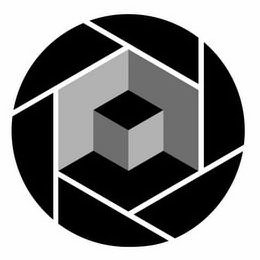 The mark consists of of a cube appearing inside a hexagon that is surrounded by a circle divided into triangles.