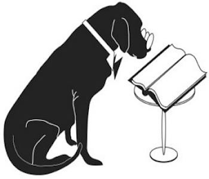 The mark consists of a seated dog wearing glasses and reading an open book that is turned to a middle part of the book, wherein the dog is wearing a bow tie and the book is placed on a small circle table.