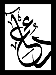 The mark consists of a thick rectangular border enclosing a calligraphic image positioned diagonally from the top left to the bottom right with two main circles stacked on top of one another, a slightly curved horizontal line in the top left corner, a diagonal line protruding towards the bottom right of the image from the bottom of the horizontal line down through the middle of the top circle and through the middle of the top of the bottom circle, a diagonal line extending towards the top right and enclosed by the bottom circle, a large curved half circle towards the bottom right of the image to the right of the bottom circle, three smaller loops to the right of the top circle, a curved calligraphic mark and a v-shaped calligraphic mark to the left of the top circle.