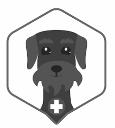 The mark consists of a Schnauzer wearing a medical cross as a collar within a hexagonal frame.