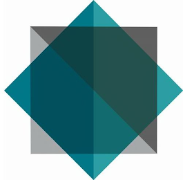 The mark consists of a square superimposed over a diamond. The square is divided diagonally in half, with the top-right portion colored dark gray and the bottom-left portion colored light gray. The diamond is divided in half from top to bottom, with the right portion colored teal and the left portion colored dark teal.