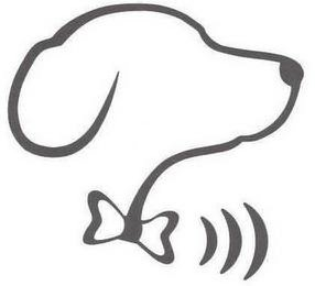 The mark consists of an outline of a dog's head. The dog is wearing a bowtie with sound waves emanating from the bowtie design.