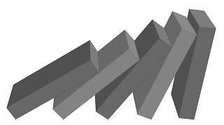 The mark consists of five rectangular prisms leaning on each other like dominoes.