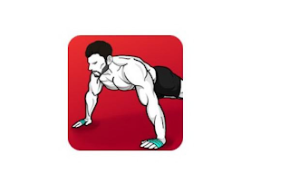 The mark consists of a man with a gray beard and black hair in a push up position, wearing black shorts, and turquoise hand bands. His body is outlined in black and is white and gray in color. The image is situated inside a square with rounded corners that is red at the top and transitions to dark red at the bottom. The white background represents transparent area and is not part of the mark.