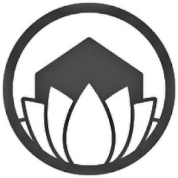 The mark consists of a circular design, within which is a house and a plant. The plant is placed atop the house, with the roof and the sidewalls of the house showing. The plant has 5 full petals and 2 partial petals.