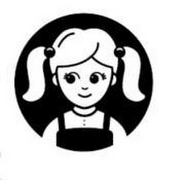 The mark consists of a circle containing a cartoon of a smiling girl with two pigtails wearing a shirt with 2 buttons and a jumper.