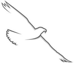 The mark consists of a falcon outline. The outline is double lined with a lighter outline inside a darker outline. The falcon has its wings open and appears to be flying mid air. The falcon is positioned in a diagonal wingspan from upper left to lower right with head and beak centered.