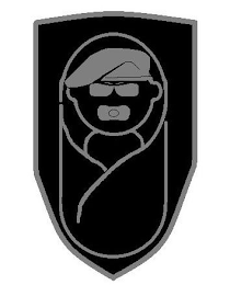 The mark consists of a stylized shield shaped like a military patch showing a baby wearing a special forces beret, sunglasses, sucking on a pacifier and wrapped in a blanket