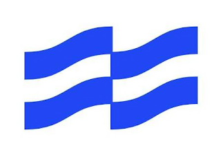 The mark consists of two identical stacks of three curved wave lines, one next to the other, each consisting of a blue wave line on top of a white wave line on top of a blue wave line. The remaining areas shown in white are for background only and are not claimed as part of the mark.