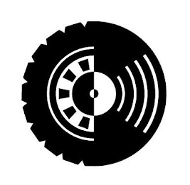 The mark consists of circular design whereby the left half is a tire and the right half is a vinyl record.