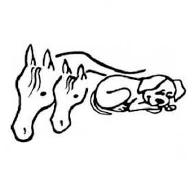 The mark consists of a stylized dog laying down with two stylized horse heads to the left of the dog.