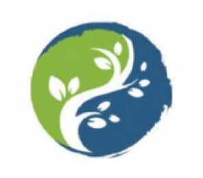 The mark consists of a circular design having an irregular circumference, the design having a green background on one half and a blue background on the other half, the two halves divided by a white swirling tree with extending branches and leaves.