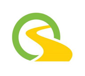 The mark consists of a partial green circle with a graduating yellow wavy line depicting a path extending from the lower right upward receding into the distance.