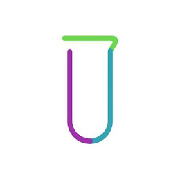 The mark consists of a test-tube emblem lined in purple, green and teal with left corner cut-out. The white background is not a feature of the mark.
