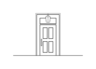 The mark consists of a stylized image of a four-panel door with a light hanging from above, all above a solid horizontal line.