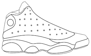 The mark consists of a three-dimensional configuration comprising the design of the upper material panel of the shoe, the circle design at the rear of the shoe, the design of dots on the upper material panel of the shoe, the design of the material panels that form the midsole of the shoe, and the relative position of these elements to each other. The broken lines show the position of the mark and are not claimed as part of the mark.